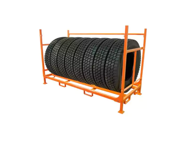 Nuestras estanterías para neumáticos están diseñadas para almacenar neumáticos. Los neumáticos se almacenan «en posición vertical» para que sean más accesibles. Se puede añadir una rampa lateral para facilitar la carga y descarga de neumáticos en la estantería.